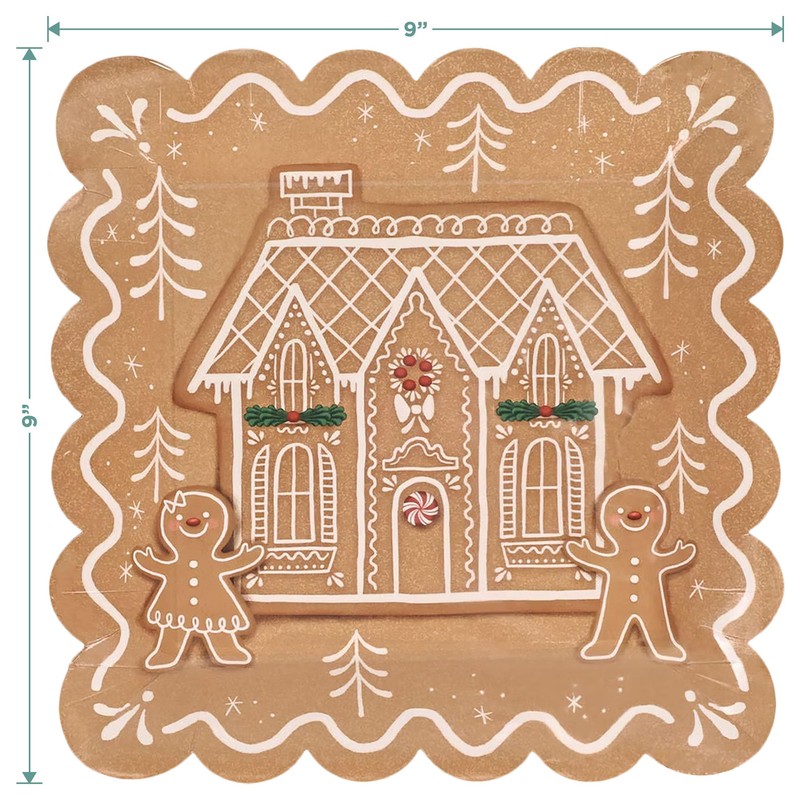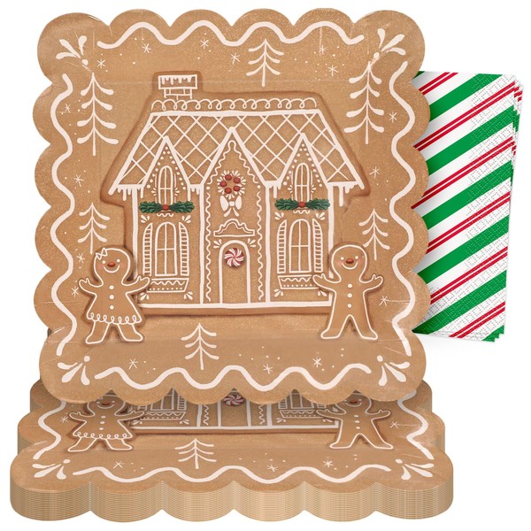 HOME & HOOPLA Gingerbread Party Paper Dinner Plates and Napkins for Christmas Holiday and Winter Parties (Serves 16)