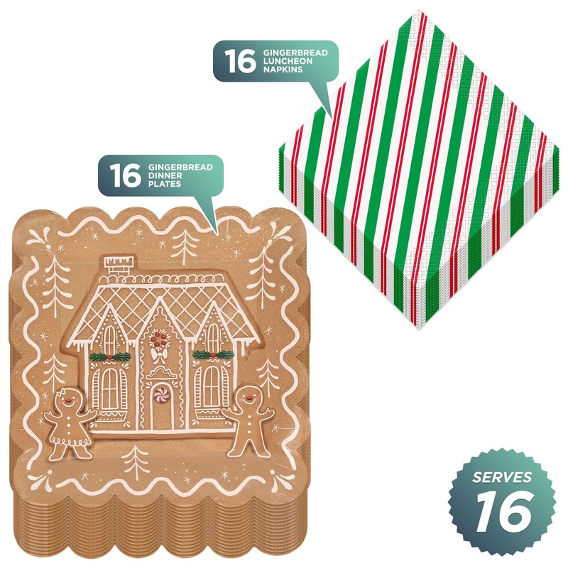 | Color: | Gingerbread Party Paper Dinner Plates and Napkins for Christmas Holiday and Winter Parties (Serves 16) |