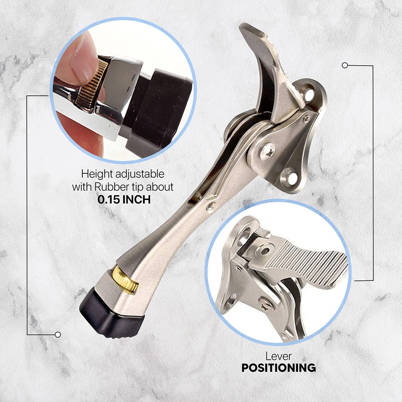 • HOME&I Easy Pedal Kick Down Bracket Door Stopper,Self-Adhesive Traceless Mounted Screw Bracket Doorstops,No Drilling,Height-Adjustable Rubber Tip