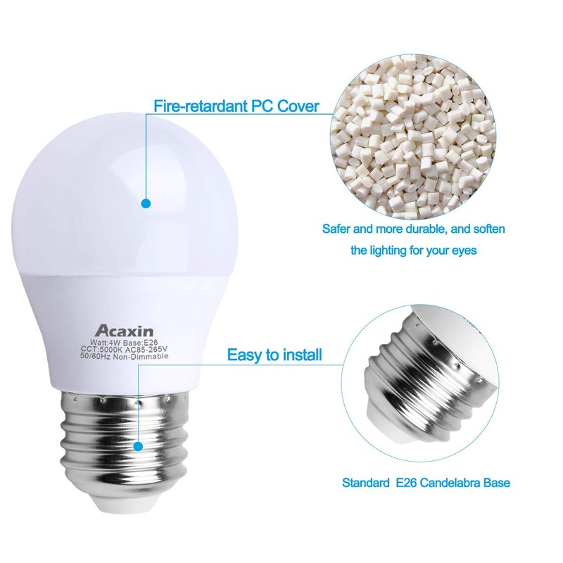 •  Wide Application - Acaxin led bulb A15 4W 400 lumen with E26 small base is ideal for your ceiling fan lights, table lamps, accent lights, wall lamps, desk lamps, floor lamps and other light fixtures