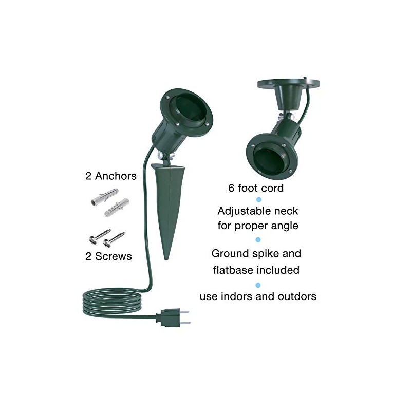 - The thick 6ft cord minimizes the number of extension cords for your front or backyard to stay clutter-free. The included ground stake for this outdoor floodlight fixture ensures stability in the ground