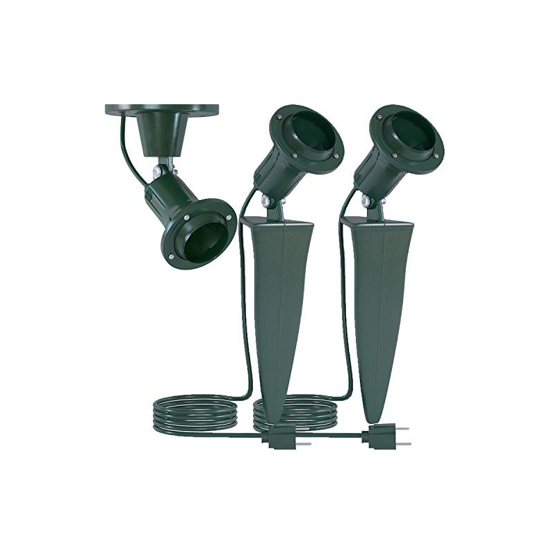 - The discreet green casing of this yard light holder blends into your landscape, making it unnoticeable in the background. Adjustable neck allows for the proper angle without the hassle repositioning