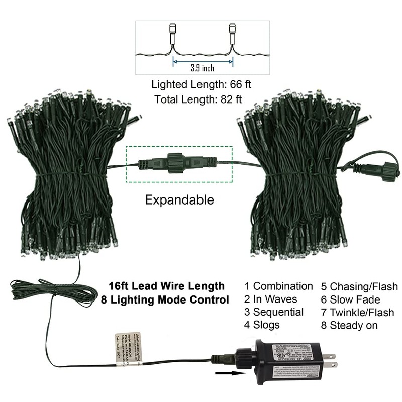 - 66ft Christmas string lights with 200 red white blue individual LED bulbs. Each patriotic fairy lights has end-to-end connection, you can connect up to 4 sets together to illuminate a wider range.