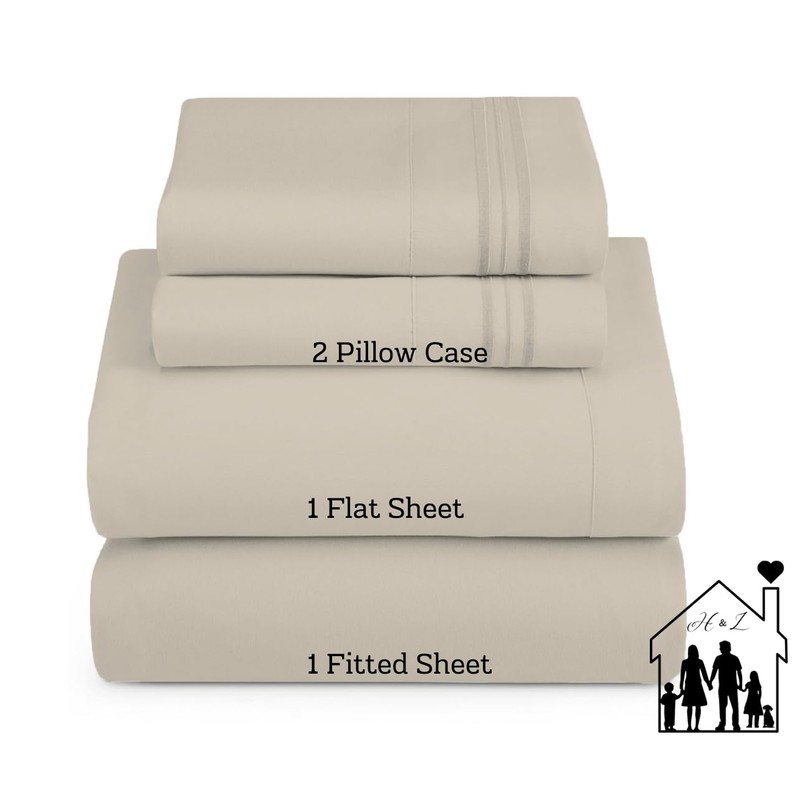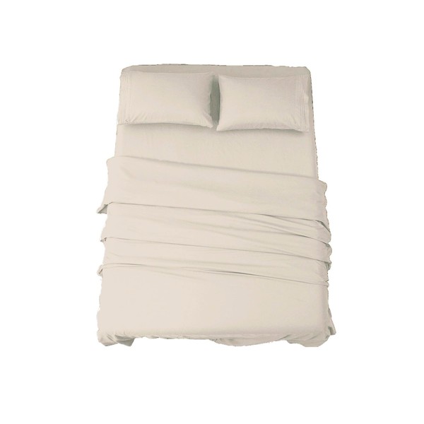 HOME&LOVE Queen Size Sheets Set,Breathable & Cooling Sheets-Hotel Luxury Bed Sheet-Extra Soft-Deep Pockets-4 Piece Set-Wrinkle Free-Comfy (Cream, Queen)