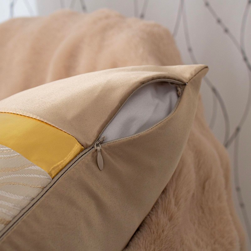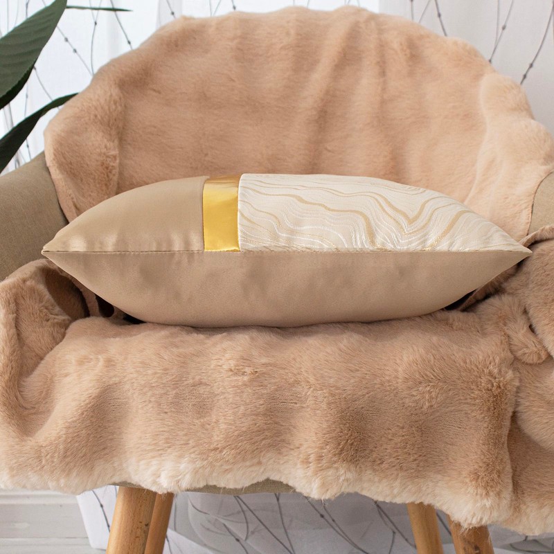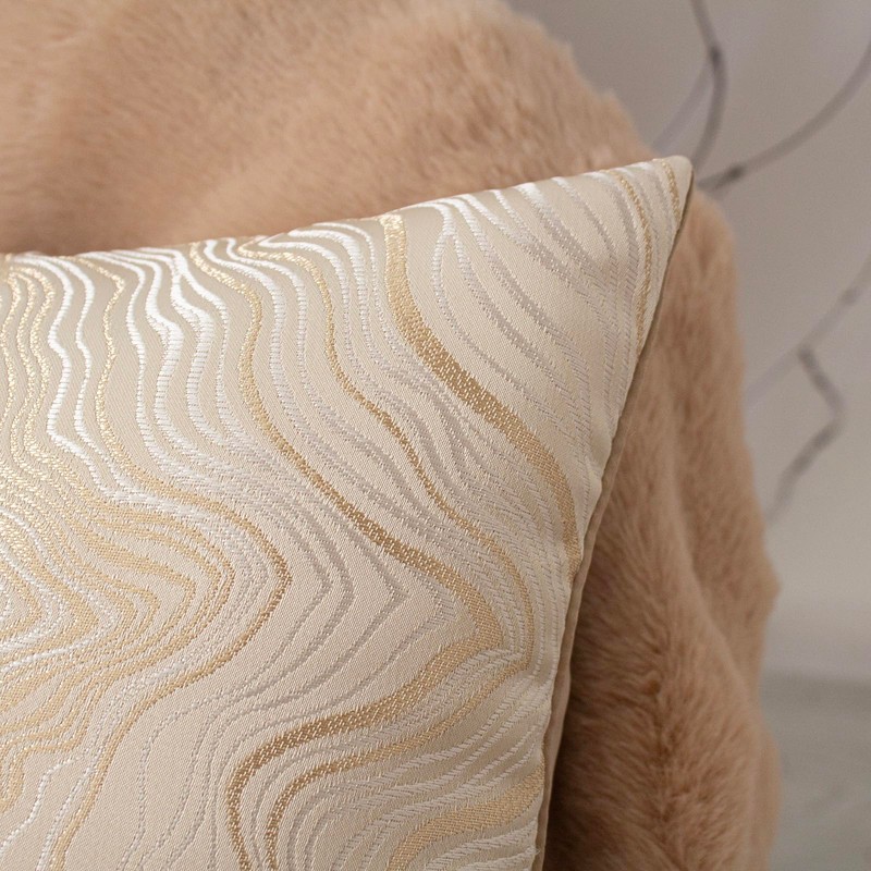 Home Luxe Premium Quality Comfortable Pillow Covers Cushion Covers with High End Embroidery for Couch Cushion Livingroom 17.7 x 17.7 inch (Pack of 2 pcs) (Beige Waves with Gold Stripe)