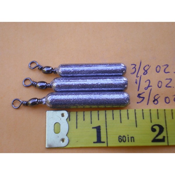 HOME MADE 15 BOTTOM BOUNCER PENCIL SINKER 3/8, 1/2, 5/8 OZ W/#7 BLACK BARREL SWIVEL 5 EA.