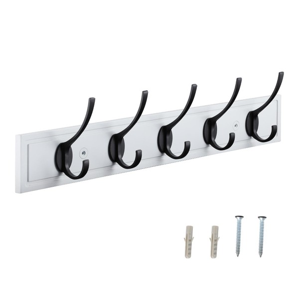 - Space Saving: The wall mounted coat rack with 5 double hooks suit for hanging jackets, coat, hats, scarf, towel, keys, umbrella, bags, Christmas socks and Christmas wreath, to keep your home organized and neat. Perfect to use in bathroom, bedroom, kitchen, closet, foyer, entryway and more
