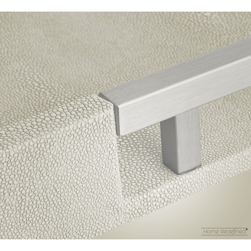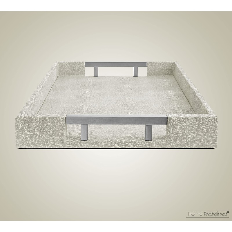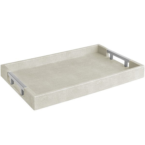 Home Redefined 18”x12” Natural Ivory Beige Rectangle Shagreen Faux Leather Decorative Serving Tray with Metal Handles Coffee Table Room Decor