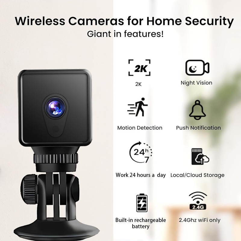- 【2K Mini High Video Quality and IR Night Vision】This wireless indoor outdoor mini camera has a 150 degree wide viewing angle, which provides 4K high video quality and images. Regarding night vision, this home security camera provides a clear view both day and night. The included app allows easy access to work videos, anywhere, Only-video.