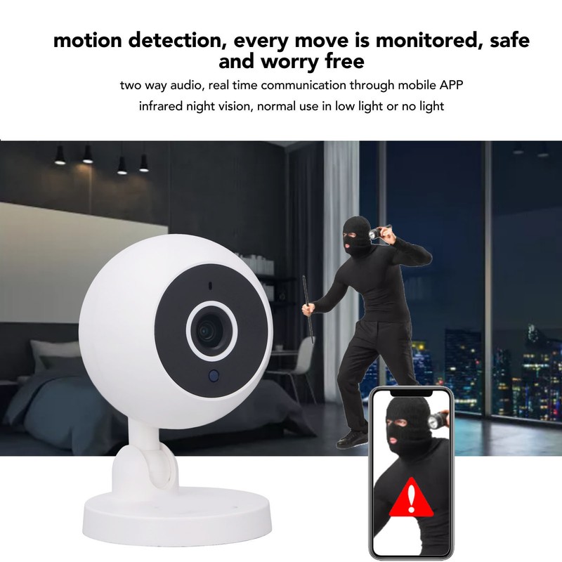 1、Clear: 1080P HD lens, 2 million high definition image quality with better optical performance, with exquisite color, real and clearer picture, and more vivid image. 2、Wide Angle: 360 degree horizontal rotation, 180 degree vertical angle, all round monitoring, no dead angle panoramic recording, effectively protect the safety of family. 3、Remote Monitoring: Download the application, you can realize multi device monitoring, support mobile phone, computer, tablet multi device online viewing at the same time. 4、Function: Motion detection, every move is monitored, safe and worry free; Two way audio, real time communication through mobile APP; Infrared night vision, normal use in low light or no light. 5、Practical: Plug and play, USB charging, low power consumption, support 128G TF card storage as well as cloud storage, high speed transmission, real time viewing.