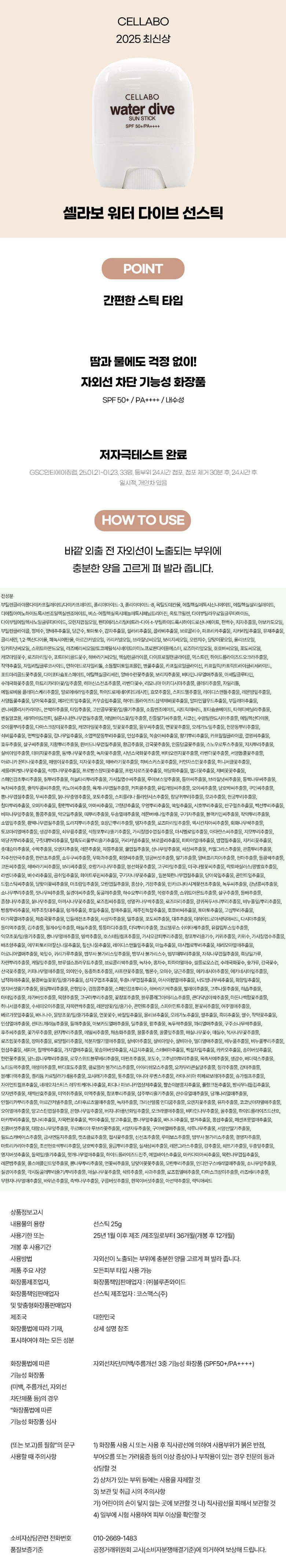 홈쇼핑 최신상 셀라보 워터 다이브 선 크림 60g 3개+선스틱 25g 이찬석