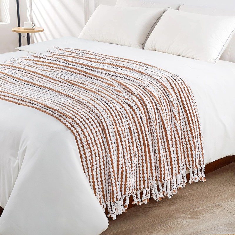 Home Soft Things Chain Tweed Throw Blanket for Couch and Bed, Soft Living Room Boho Decor Knitted Farmhouse Blanket with Braided Tassel, Outdoor Breathable All Season Blanket, Camel, 50" x 60"