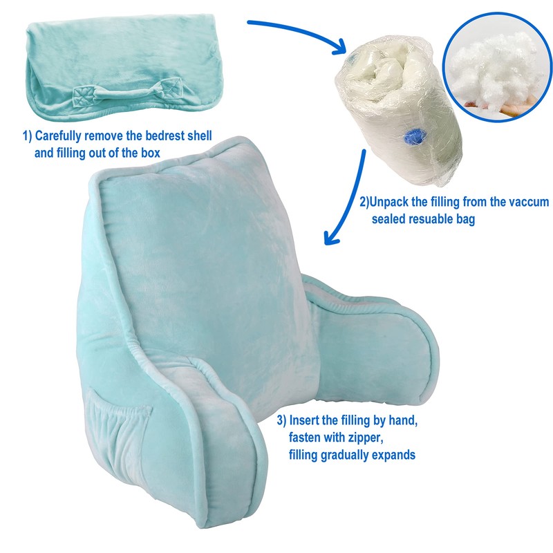 - Take delight in the DIY filling that is packaged in a vacuum sealed, space-saving reusable bag. Bed rest shell is included in the box, ready to be filled. Easy fill directions create a fun Do It Yourself atmosphere and allow you to take pride in your new home addition. Include a personalized message, upon request.