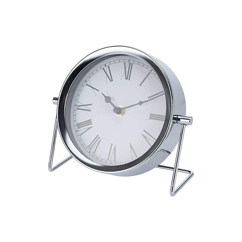 Home Styling Collection Round table clock, on metal base, silver