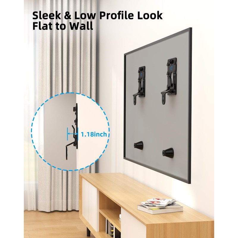 - Space-Saving: Distance from wall of this TV mount bracket is only 1.18 inches, which makes it blending in your living environment perfectly. By securely mounting your TV on the wall, you can reclaim valuable floor space and enjoy a clean and organized setup. Maximize the functionality of your living space with our TV wall mount