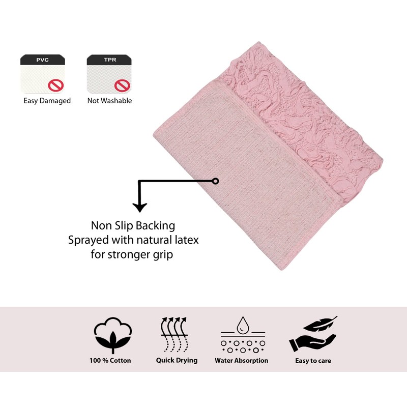- Non-Slip Spray Latex Backing: The Bell Flower Collection bath rugs feature a non-slip spray latex backing, providing stability and safety to prevent slips and falls, making them perfect for families.