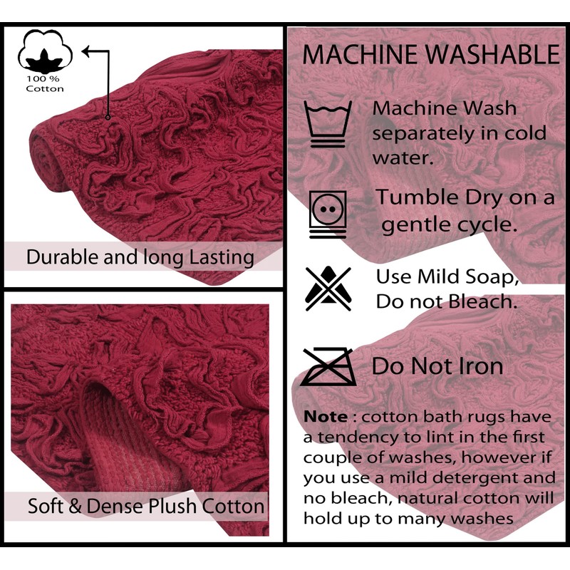 - Easy Maintenance & Multiple Sizes: Keeping your bath rugs pristine is a breeze. Our Bell Flower Collection rugs are easy to clean and maintain, retaining their beauty and plushness over time. Choose the perfect size for your bathroom; we offer a range of dimensions to fit any space.
