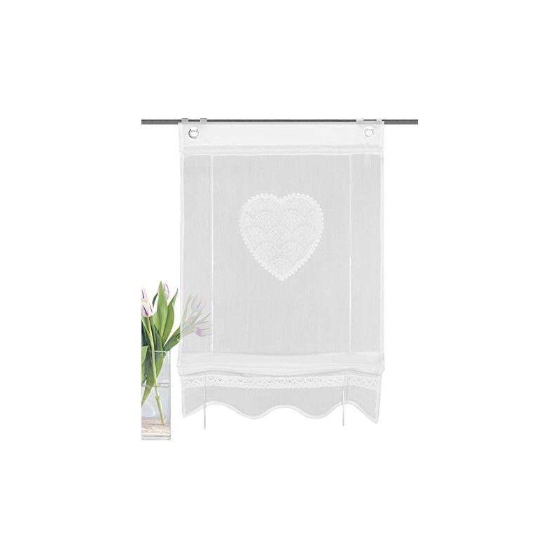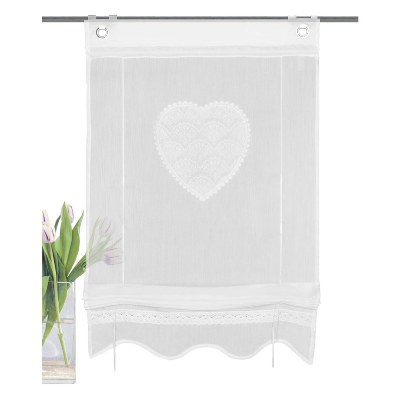 HOME WOHNIDEEN 91417 Corazon Roller Blind with Eyelets and Hooks Made of Batiste Embroidered and Lace with Bottom Cover White Dimensions (H x W) 130 x 45 cm