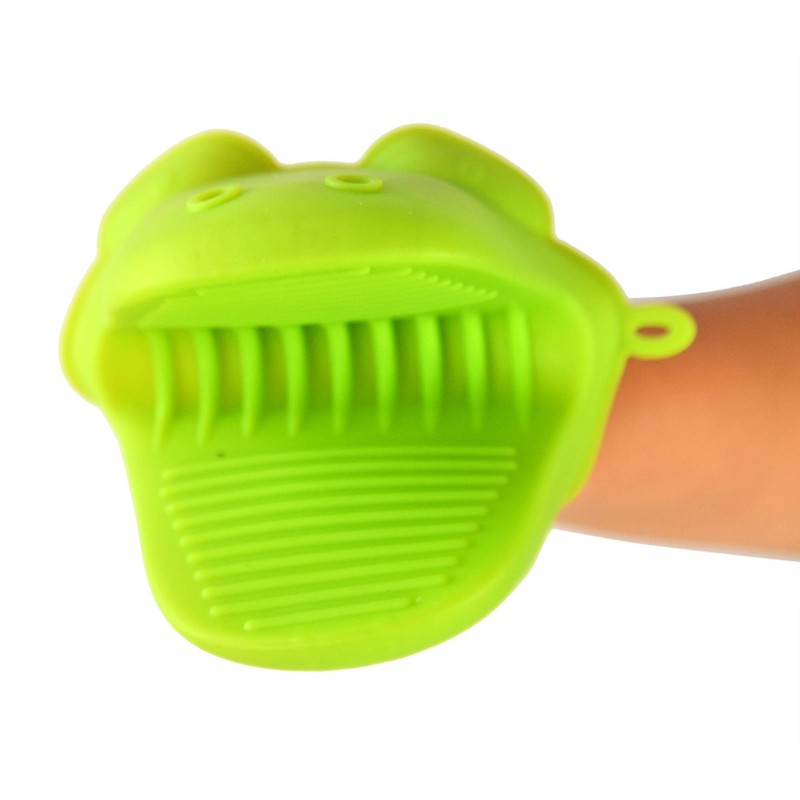 - MITTS WITH GRIPS: When you grab a plate or a pan with these froggy kitchen mitts, their grip won't croak. Designed with ridges on the inside of their mouths, they'll make sure that whatever you give them to hold stays there. If you upgrade to these high-quality mitts, the thin, fabric oven mitt you previously used will be hopping mad with jealousy.