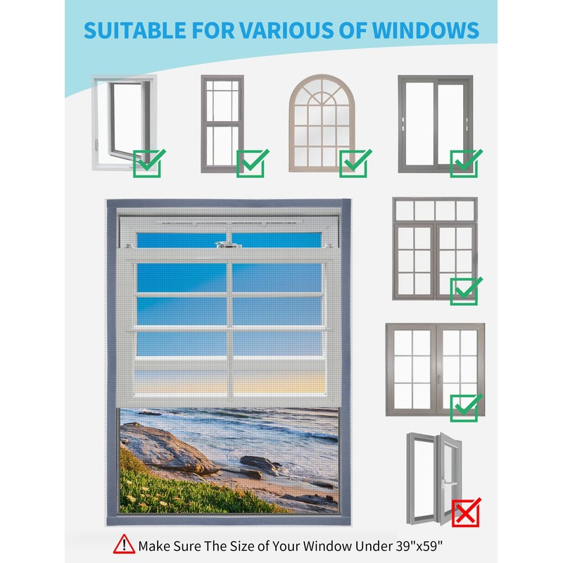 The large size of 39"x 59" make it adjustable to most windows,no more worry about getting wrong size window screen.