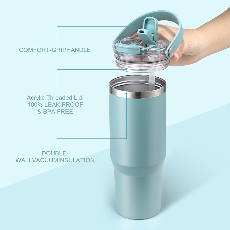 Homealexa Insulated Tumbler 900ml/30oz 304 Stainless Steel, Double Wall Vacuum Design with Leak-Proof Lid and Straw, Perfect for Cold & Iced Beverages Blue