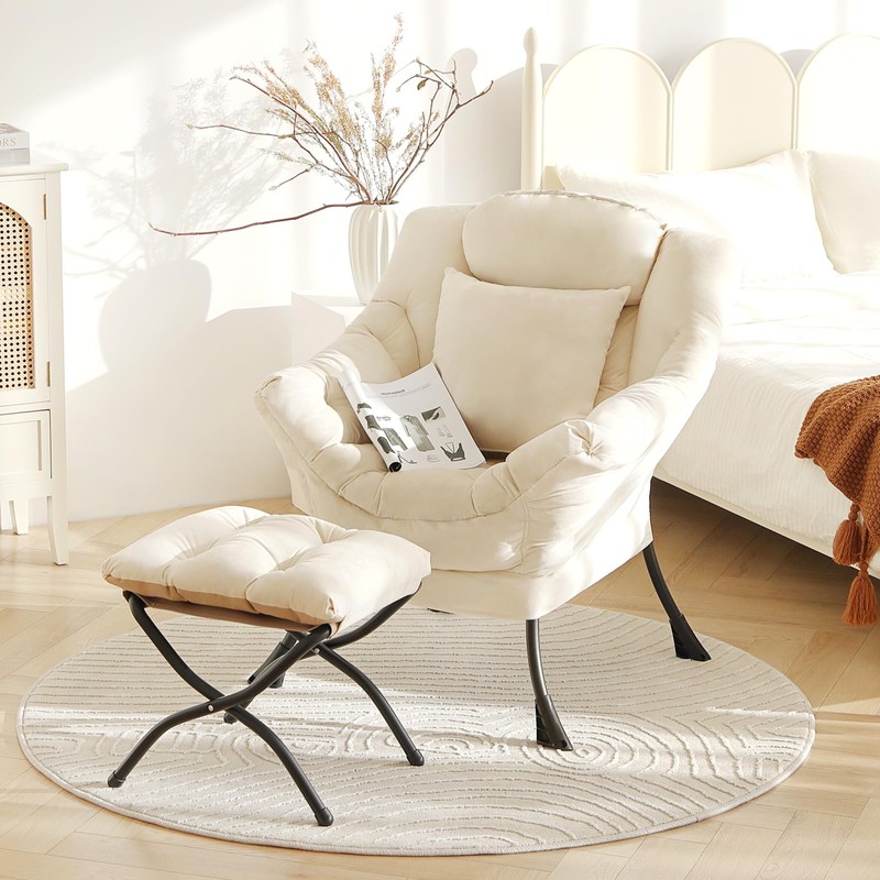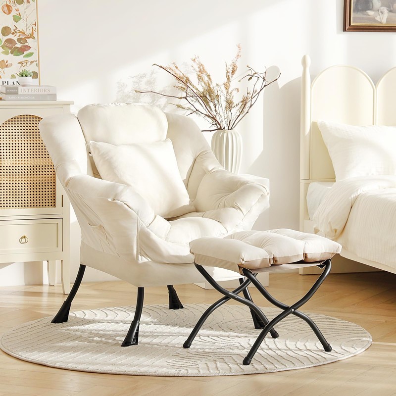 - 【EASY ASSEMBLY】Our lazy chair with ottoman offers a experience, thanks to this comfy chair’s user-friendly design. With clear, illustrated instructions and no need for extra tools, setting up your relaxation easy.