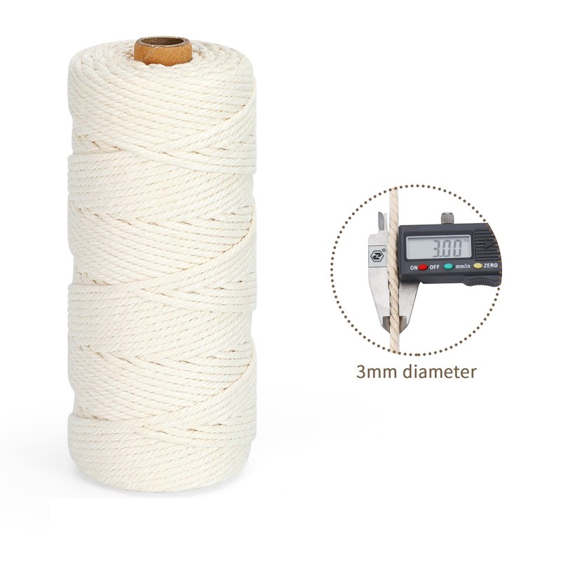 - Size & Package: Macrame cotton string is 3mm (3/25") in diameter, the length is around 220yards for each spool. Our twisted cotton string is cut to length and packaged in spools, opp bag covered, keep it in stable and beautiful shape when shipped, easy to organize, prevent to mess when unraveled to use.