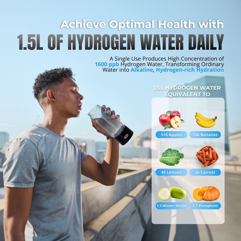 - Enhances Energy and Reduces Fatigue: Infused with 99.99% pure molecular hydrogen, our bottle delivers powerful antioxidants that boost energy levels, reduce fatigue, and promote overall wellness. Hydrogen water is renowned for its potent antioxidant and anti-inflammatory properties, benefiting more than 150 different health conditions. Clinical trials have shown that drinking three bottles of hydrogen water can deliver antioxidant benefits equivalent to consuming hundreds of fruits and vegetables.