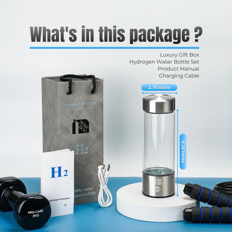 - Perfect Health Gift: Combining elegance, innovation, and well-being, the HomeBoo Hydrogen-Rich Water Bottle is the ultimate gift for health enthusiasts. Its sleek design, advanced technology, and proven health benefits make it a thoughtful and practical present for anyone looking to enhance their hydration and overall wellness. Ideal for birthdays, holidays, or any special occasion, this bottle is a gift that shows you care about the recipient's health and happiness.