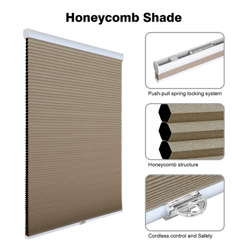 - 【CORDLESS BLINDS】: With the spring lifting system, you can easily pull up or down the blinds and let it stay in any position you want. In contrast of corded blinds is this blinds safer for children and pets.