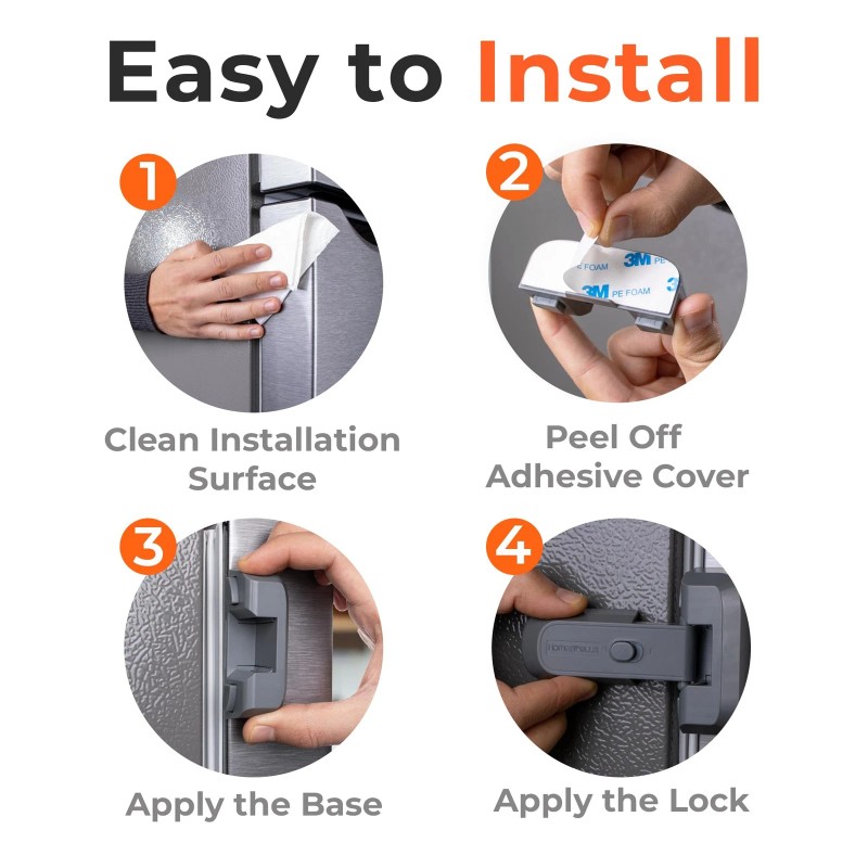 Easy to Install & No Tools Required - Our childproof fridge lock has a pre-applied adhesive pad, so you can stick it to your fridge without any tools or drilling.