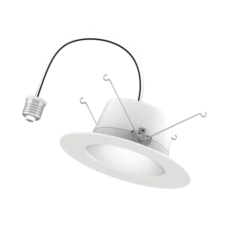 • LIGHTING - 6 Lights included. Integrated LED technology lasts 50,000 hours. No additional light bulbs required. LED light uses 11.8 watts (Incandescent equivalent: 65 watts). Energy-star certified. Retrofit LED Baffle-Trim Downlights easily fit into 5" or 6" housing. Its compact design allows for versatile installation in various spaces. Seamless dimming capabilities (10%-100%) to fit any mood or decor.