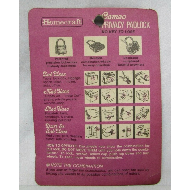 Homecraft Rare Vintage Homecraft Cameo Combination Locks Stock No.680001 NOS