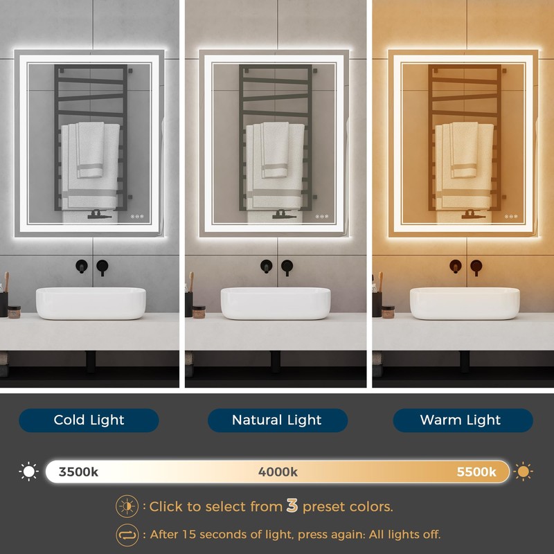 - 【Clear Reflections & Durable Construction】- Enjoy consistently clear reflections with the anti-fog feature, ensuring optimal visibility at all times. Crafted from shatter-proof tempered glass, this wall-mounted bathroom mirror is exceptionally sturdy and resistant to breakage, providing peace of mind for safe use.