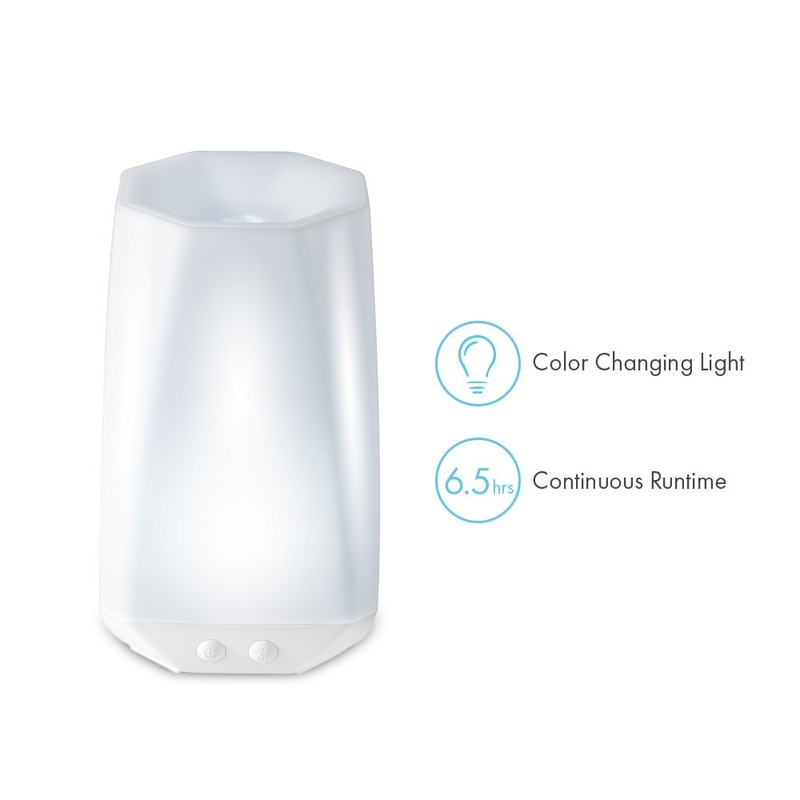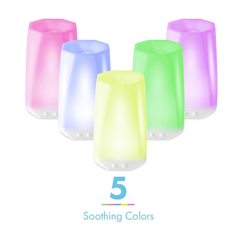 The diffuser’s **color-changing light** offers a variety of color options — pick the one that best matches your mood or cycle through them all! This diffuser is perfect for use in any room – including the nursery! Use the diffuser as a calming nightlight for your baby while diffusing the air with relaxing scents and soothing humidity.
