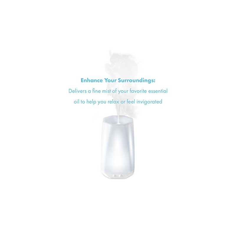 - AROMATHERAPY DIFFUSER: Delivers a fine mist of your favorite essential oil to help you relax or feel invigorated. The soothing humidity helps to alleviate dry air