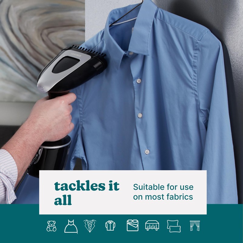 - Turbo steam technology effortlessly flattens stubborn wrinkles and refreshes garments for a polished appearance.