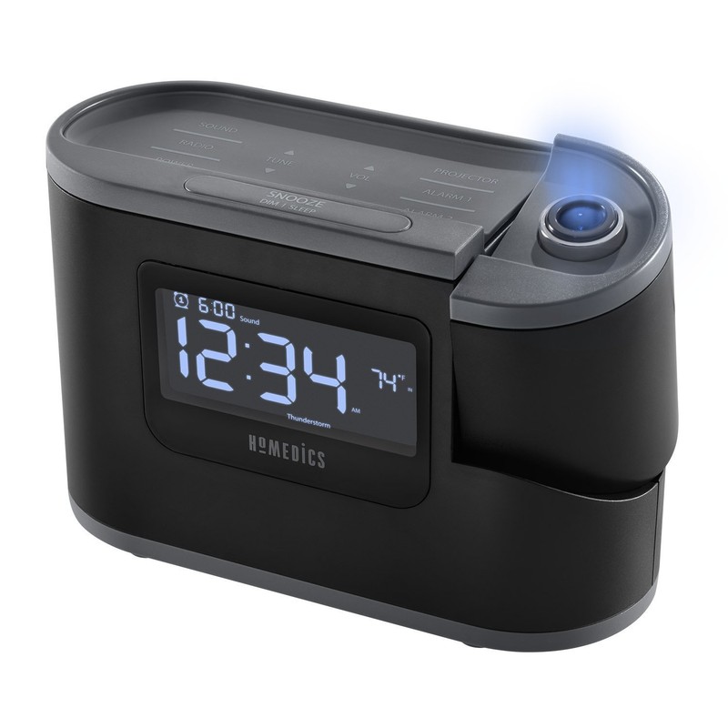 Homedics SoundSleep Recharged Alarm Clock & White Noise Sound Machine, 6-in-1 Projection Alarm Clock and Sleep Sound Machine, 8 Nature Sounds and Indoor Temperature Sensor, Auto-Off Timer