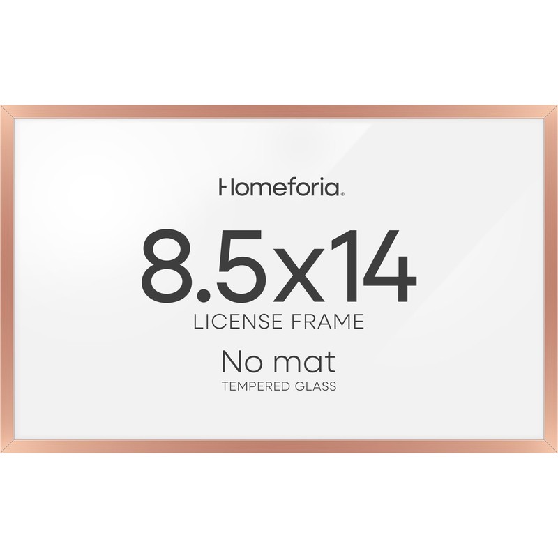 Homeforia License 8.5x14 Picture Frame Rose Gold, High End Metal 8.5x14 Frames for Wall or Tabletop, Rose Gold Photo Frames 8.5 x 14 with No Mat, Tempered Glass, Wall Kit, Set of 1