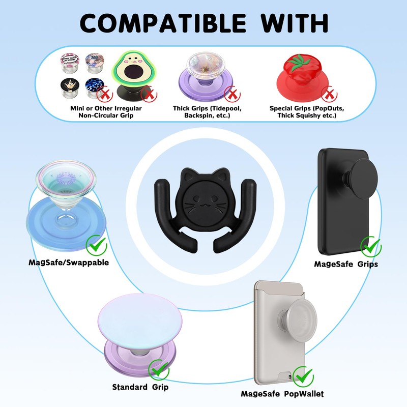 - /ᐠ。ꞈ。ᐟ 【COMPATIBLE】: Fits most socket grips includes OLD version, NEW basic version, NEW Premium version of the swappable socket grips (FLAT TOP and Non-3D Diamond Metallic) But does NOT fit socket grips with Swappable Top (Thicker LUXE version) OR mini grips or irregular shape socket grips.