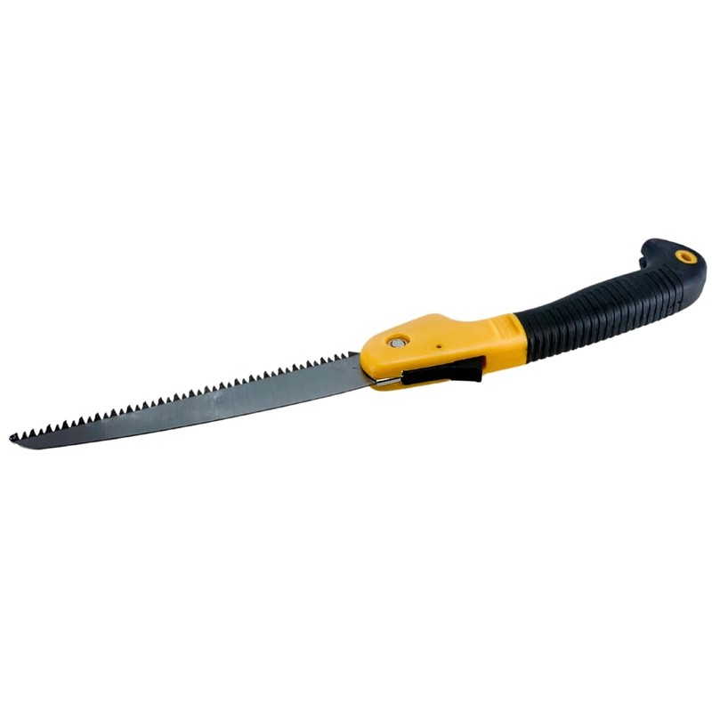 Introducing our compact folding pruning saw, perfect for a variety of outdoor activities including tree pruning, hunting, or camping. Designed with a durable ABS handle and TPR grip for maximum comfort, this saw features a convenient push lever locking mechanism for secure operation. Hang it up for easy storage and grab it whenever you need it!