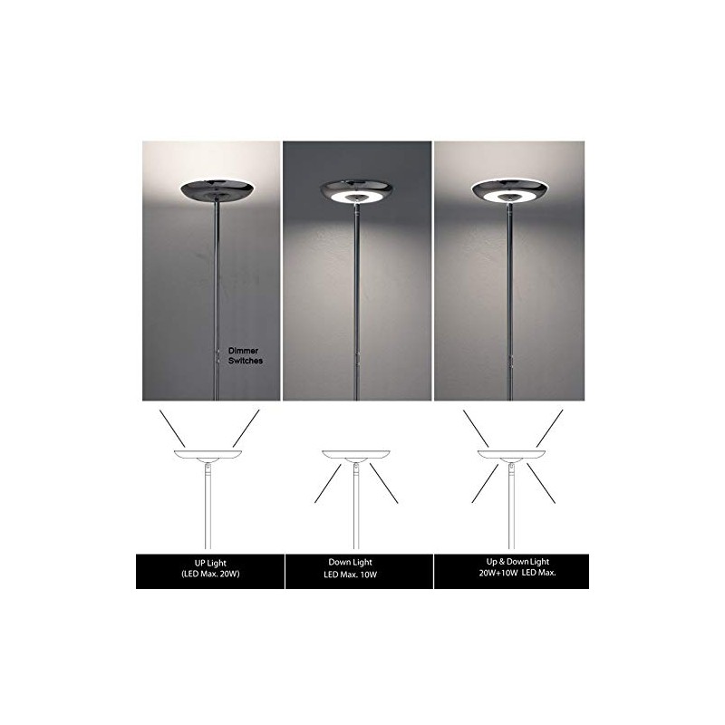 HOMEGLAM UFO High Bright LED Dimmable 20W up and 10W Down Lights Torchiere Floor Lamp