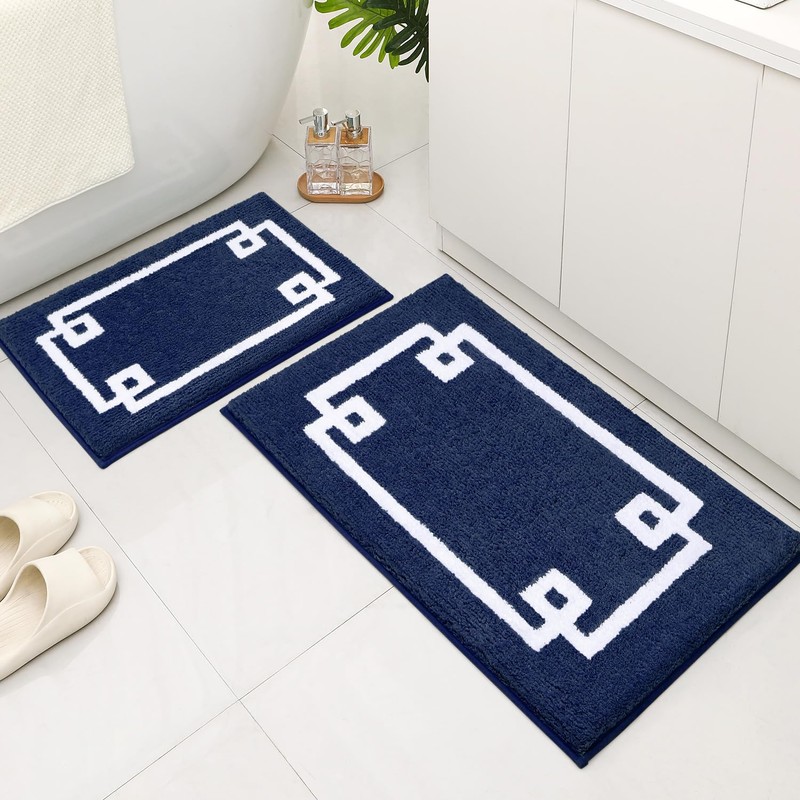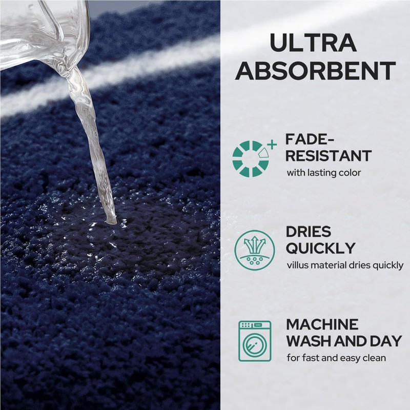 HOMEIDEAS Bathroom Rugs Sets 2 Piece, Soft and Water Absorbent Microfiber Carpet, Non-Slip Washable Bath Mats (20"x32"+16"x24", Navy Blue and White)