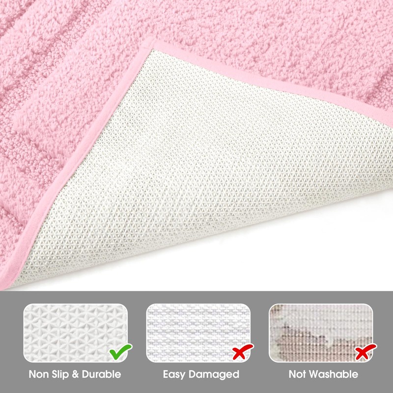- Non-Slip & Safety: Backed with TPR rubber, it prevents shifting and skidding effectively. Please Keep bottom of the non-skid bath mats dry and place them on DRY SMOOTH FLOOR only. Water underneath may cause it to slip.