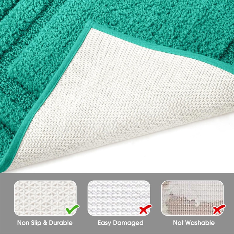 - Non-Slip TPR Backing: These bathroom mats feature a durable TPR rubber backing that helps keep the rug firmly in place, even on tile or laminate floors, making it a great choice for seniors and kids!