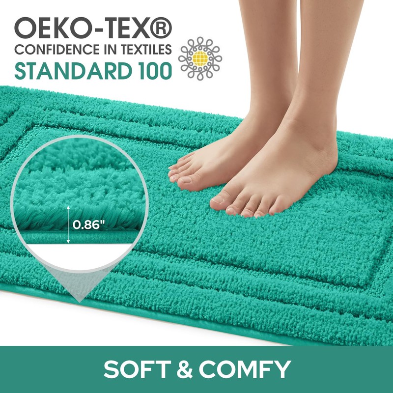- Soft & Cozy Bathroom Rugs: Let your feet enjoy the soft touch of premium microfiber. Designed with thick, plush fibers that cushion every step, these bathroom rugs are perfect for getting ready after a shower or at the sink.