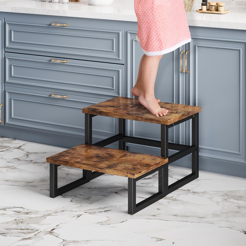 - Multi-Purpose 2 Tier Step Stool It can be used for kids tollder, helps children reach the bathroom sink, kitchen counter, high beds, bathtub or bookshelf, they can wash hands and brush teeth at bathroom sink, toilet potty training, also it could be used for adults, It is useful at the bedside and for reaching items in high cabinets in the kitchen or living room.