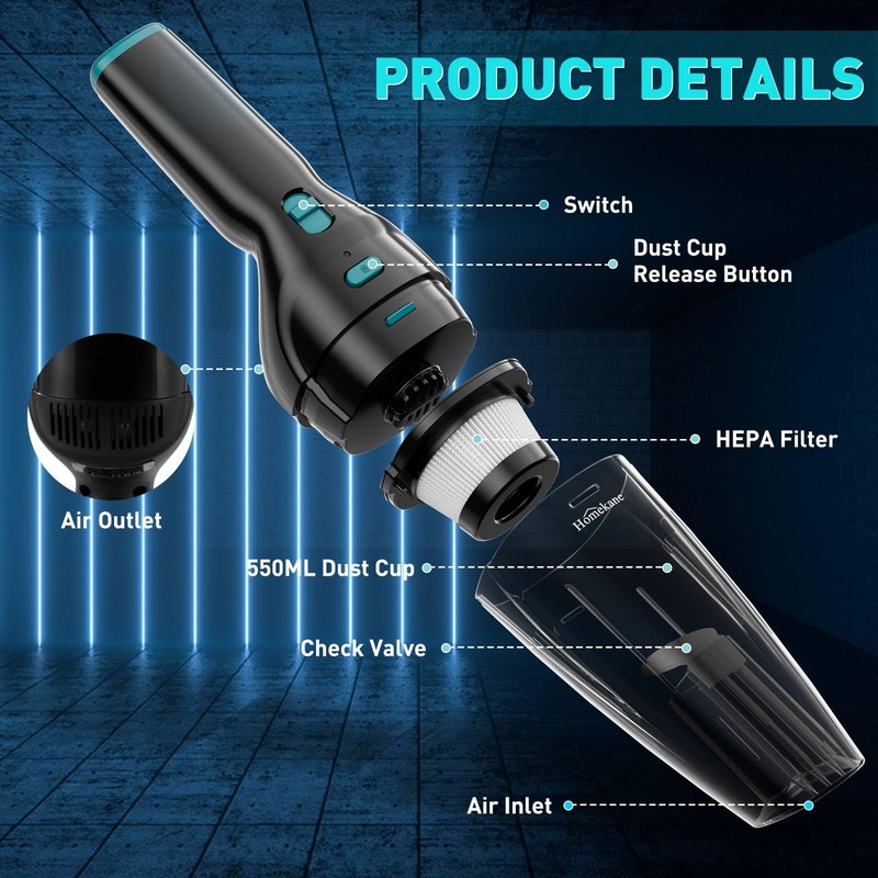 - 🔋【One-Year Warranty】Enjoy peace of mind with our one-year warranty. For any questions, reach out to us. Experience efficient, convenient, and quiet cleaning with our handheld vacuum!
