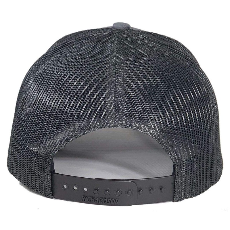 - 6 panel trucker with pre-curved bill, soft mesh backing, and an adjustable snapback closure