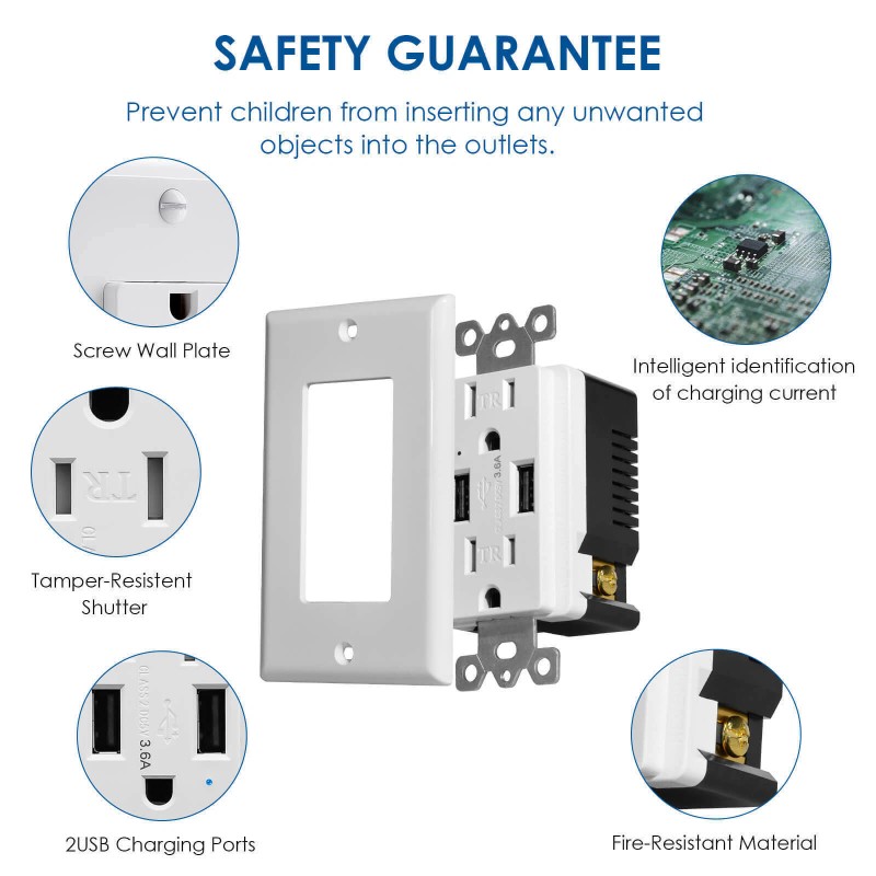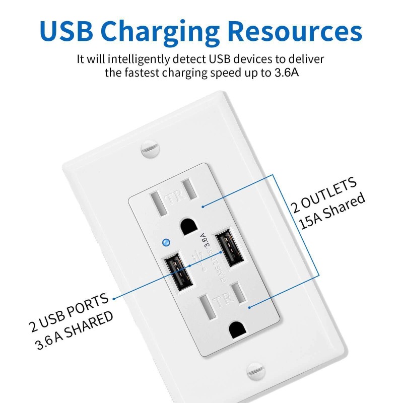 Homelife Wall Outlets with USB Ports 3.6A Tamper Resistant Electrical Socket w/Plate × 12